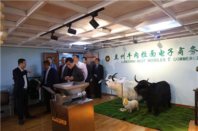 考察团队在金味德产业集团产业链之一的兰州牛肉拉面电子商务有限公司考察交流。